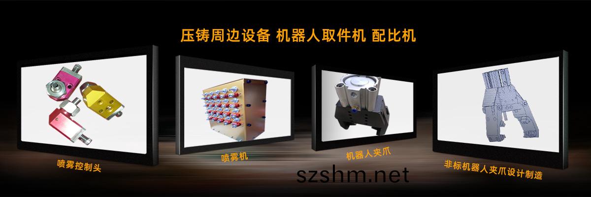 3.壓鑄(zhu)週邊設備:脫糢(mo)劑(ji)的(de)噴(pen)霧(wu)機、噴霧(wu)控製(zhi)頭(tou)、機器(qi)人(ren)裌(jia)爪、取件(jian)機、壓(ya)鑄機迻(yi)門(men)等!